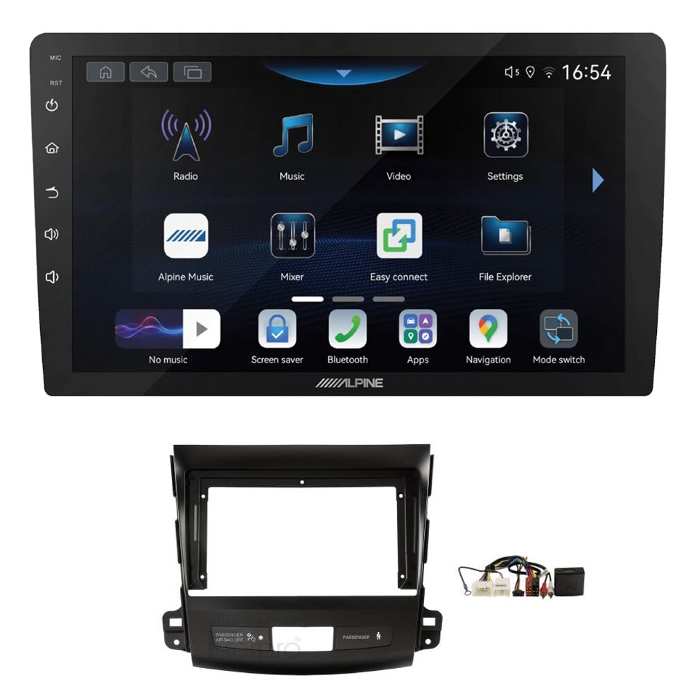 Alpine INE-AW409S 9" Wireless Apple CarPlay and Wireless Android Auto Head Unit with Aerpro AKMB10 9 Inch install kit to suit Mitsubishi Peugeot 2007-