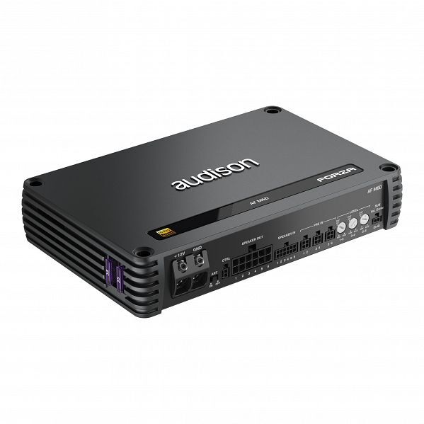 AF companion amplifiers are designed to add powerful amplifier channels to AF bit processor amplifiers. A plug-and-play signal input harness is included to make connection to AF bit amplifiers straightforward. AF companion amplifiers are also perfect for use with systems controlled and managed by a standalone bit processor, such as a bit One HD Virtuoso. AF companions have a straight wire architecture, without analogue preamp functions such as crossover filtering, and are intended for use with external processors. AF M6D boasts four high-fidelity amplified channels 135Wx6 at 4 Ohm*, 220Wx6 at 2 Ohm* with the audiophile sound of the latest generation Audison D-Class technology. Higher switching frequencies, steeper filtering, and higher-tolerance components deliver sound above and beyond the expectation of Class D, in an amazingly compact package. The audio band is extended up to 40 kHz earning the coveted High-Resolution certification. Bridging channel pairs results in 440Wx3 at 4 Ohm*, guaranteeing flexible and powerful performance.