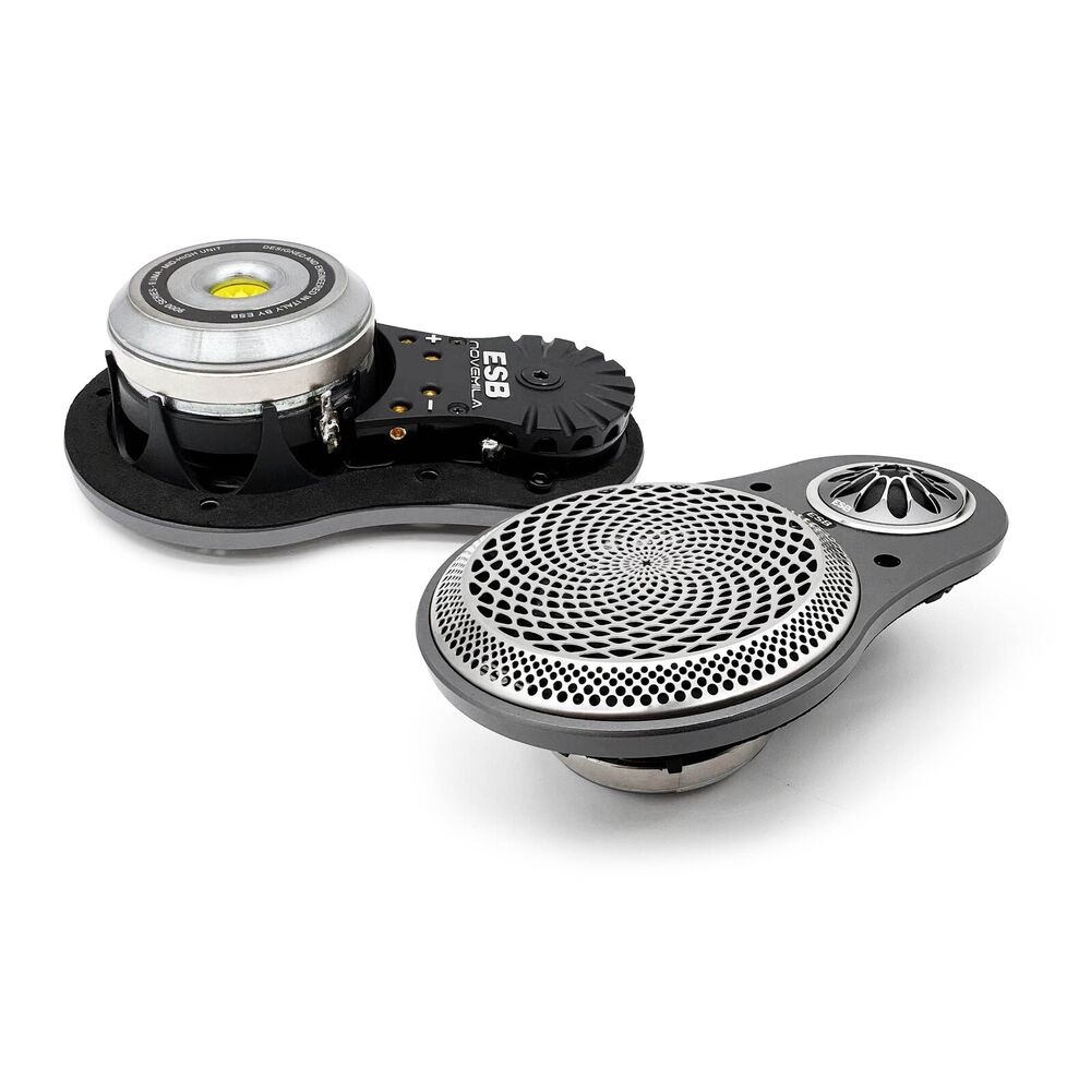 - CNC-machined billet aluminum flange allows the midrange and tweeter to be mounted using screws so the two speakers can be replaced if need be.