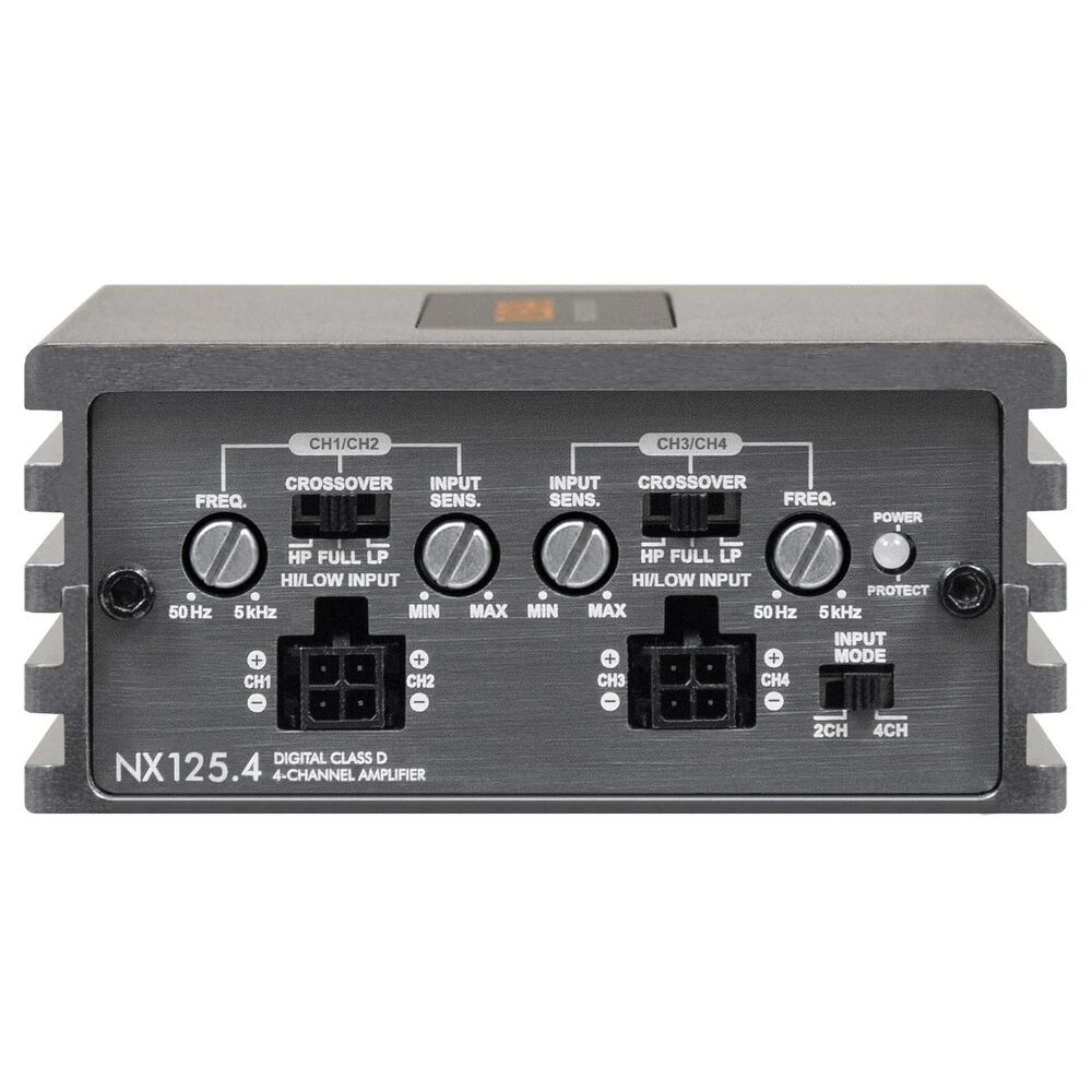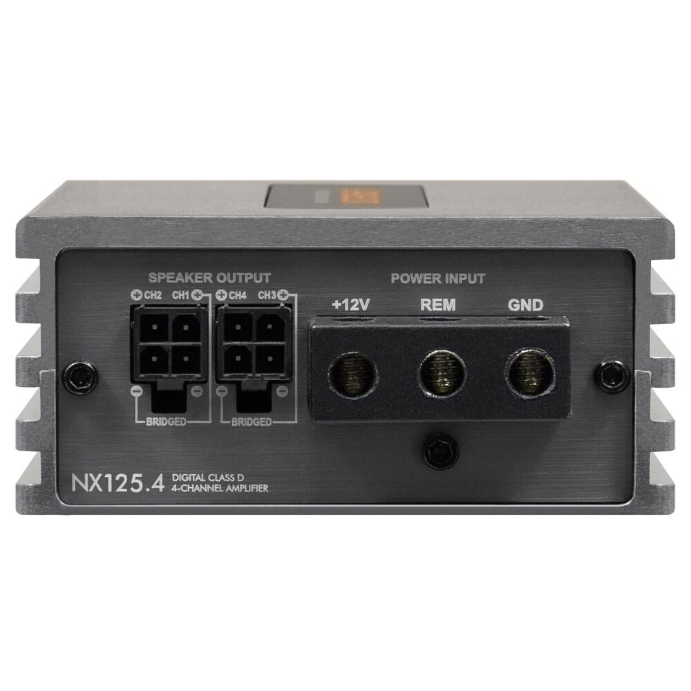 The NX125.4 is a high-efficiency 4-channel digital Class D amplifier designed for modern car audio systems that demand strong output, clean sound, and flexible tuning all in a compact, installer-friendly size.