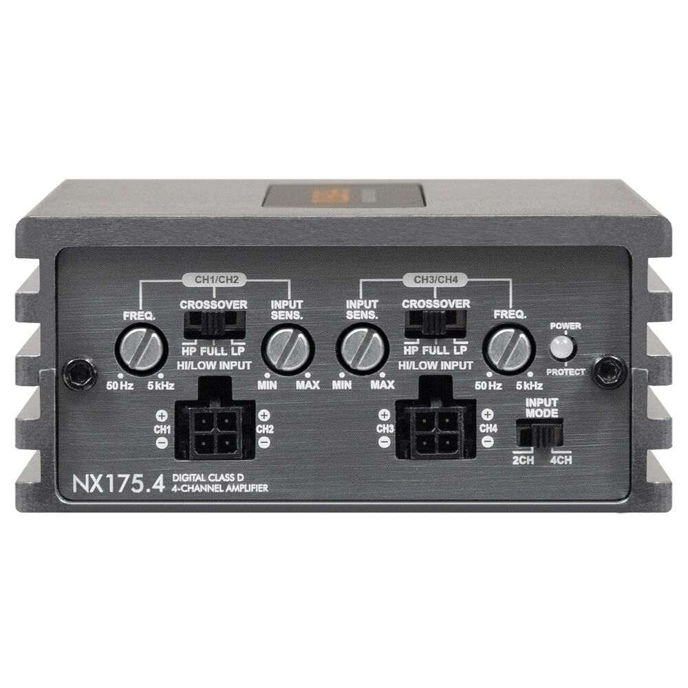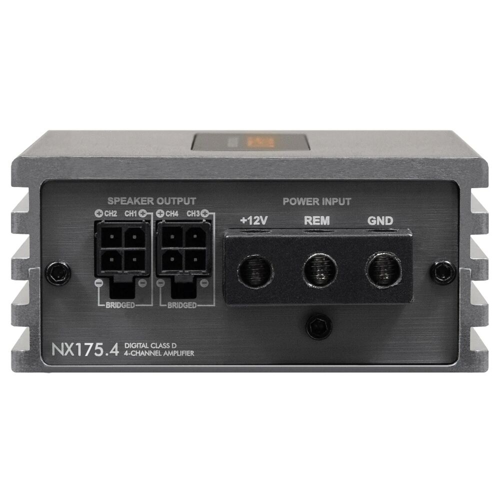 For speaker systems, it produces 4 x 100 W RMS @ 4 ohms or 4 x 175 W RMS @ 2 ohms (13.4 V), giving your speakers the headroom they need for effortless detail and dynamics. For extra versatility, it can be bridged to deliver 2 x 350 W RMS @ 4 ohms bridged, ideal for powering a subwoofer or a higher-output configuration. With an outstanding signal-to-noise ratio of >99 dB and high/low-pass filtering (50–5000 Hz) on both channel pairs, the NX175.4 is a premium choice for clean, controlled, high-fidelity performance in compact installations.
