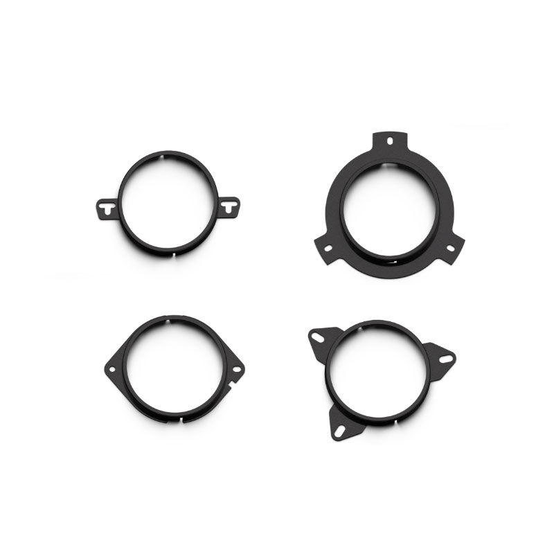Auto Fit Architecture: Everything was engineered to fit. A re-designed frame, mounting holes, removable motor cover and speaker diameter were all engineered to ensure seamless integration into today’s modern vehicles. Our Factory Location Woofer Ring (F.L.W.R.) and mounting flanges provide a flexible yet precise alignment for drop-in integration into most factory mounting locations.