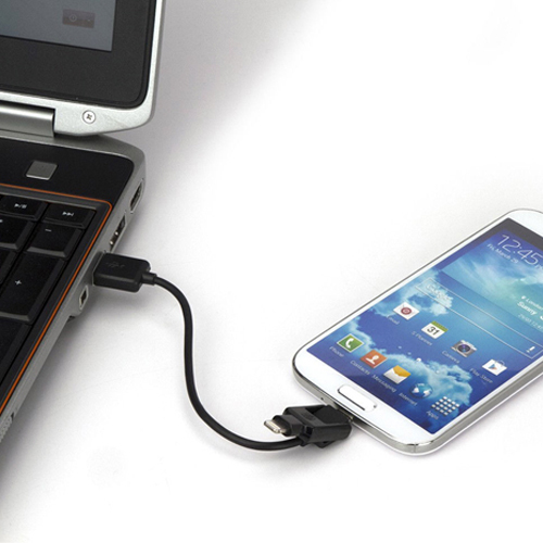 This 2-in-1 cable uses a sliding adapter to let you charge and sync with either the Lightning or micro USB connector.
