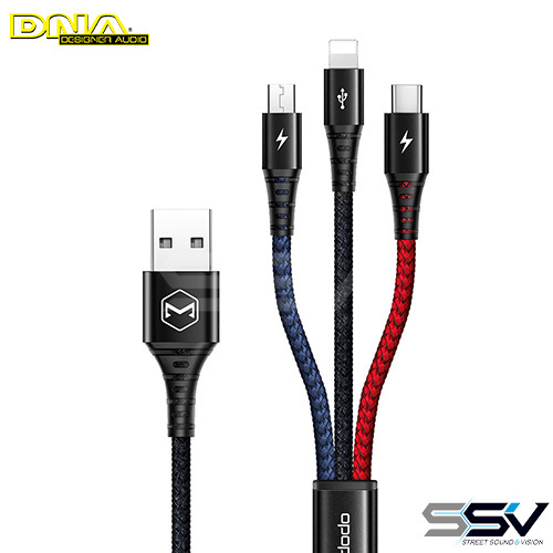 Nylon Braided Super-Tough Type-C, Lightning and Micro-USB 3-in-1 Combo To USB Charge Lead