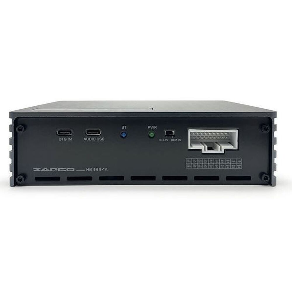 The HB 46 II 4A is 6-Channels DSP with 31-bands EQ and integrated 4-Channels Class-AB Amplifier. It has 4-Channels High-Level inputs and 6-Channels RCA outputs, plus 2-Channels RCA inputs. We also add a quality HD Bluetooth for music streaming and the Music Player function to be activated via USB memory. With the optional Remote you can also control the main and subwoofer volume, select Presets and input Source, and switch to previous or next song with the Music Player, directly from your dashboard.
